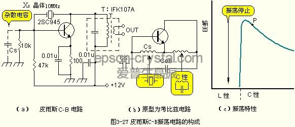 图27所示的为皮尔斯C-B振荡电路,其原型为如图(b)所示的考毕兹振荡电路。
