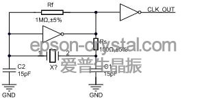 图2 无缓冲反相器和晶体组成的晶振电路