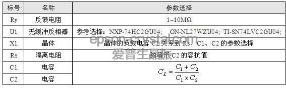 电路中电阻和电容的选择取决于反向器增益、频率稳定性、功耗、晶体特性和启动时间等,推荐参数如表2。