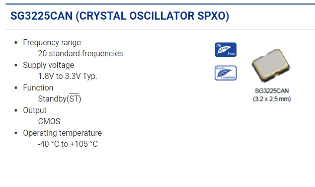 2020-12-29爱普生3.3V有源晶振SG-211SCE用什么代换?SG-211SCE是一款高精度有源晶振,外部尺寸2.5*2.0mm(2520)贴片晶体振荡器。Vcc电源电压范围2.7V ~ 3.63V,标称电压3.3V。在-40~+85℃范围内可以满足15ppm或20ppm精度需要。由于爱...