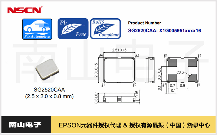 2025-02-21爱普生车规级晶振SG2520CAA:智能汽车电子系统的“时钟心脏”爱普生晶振SG2520CAA是一款专为汽车应用设计的石英晶体振荡器(SPXO),小体积晶振尺寸2.5x2.0mm四脚贴片晶振,有源晶振,电源电压1.6V至3.63V,提供1MHz至75MHz的广泛输出频率范围,并能在-40°C至85°C(部分型号可达125°C)的宽温度范围内保持稳定工作,具有超小型,轻薄型,低抖动,低功耗,低耗能,低损耗,低电源电压等特点,SG2520CAA贴片晶振被广泛应用于ADAS、车载通信、信息娱乐等关键领域。...