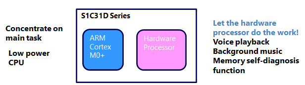 配备语音播放硬件,因此即使在语音控制期间,CPU (ARM Cortex ? M0+) 也可以处理完整操作